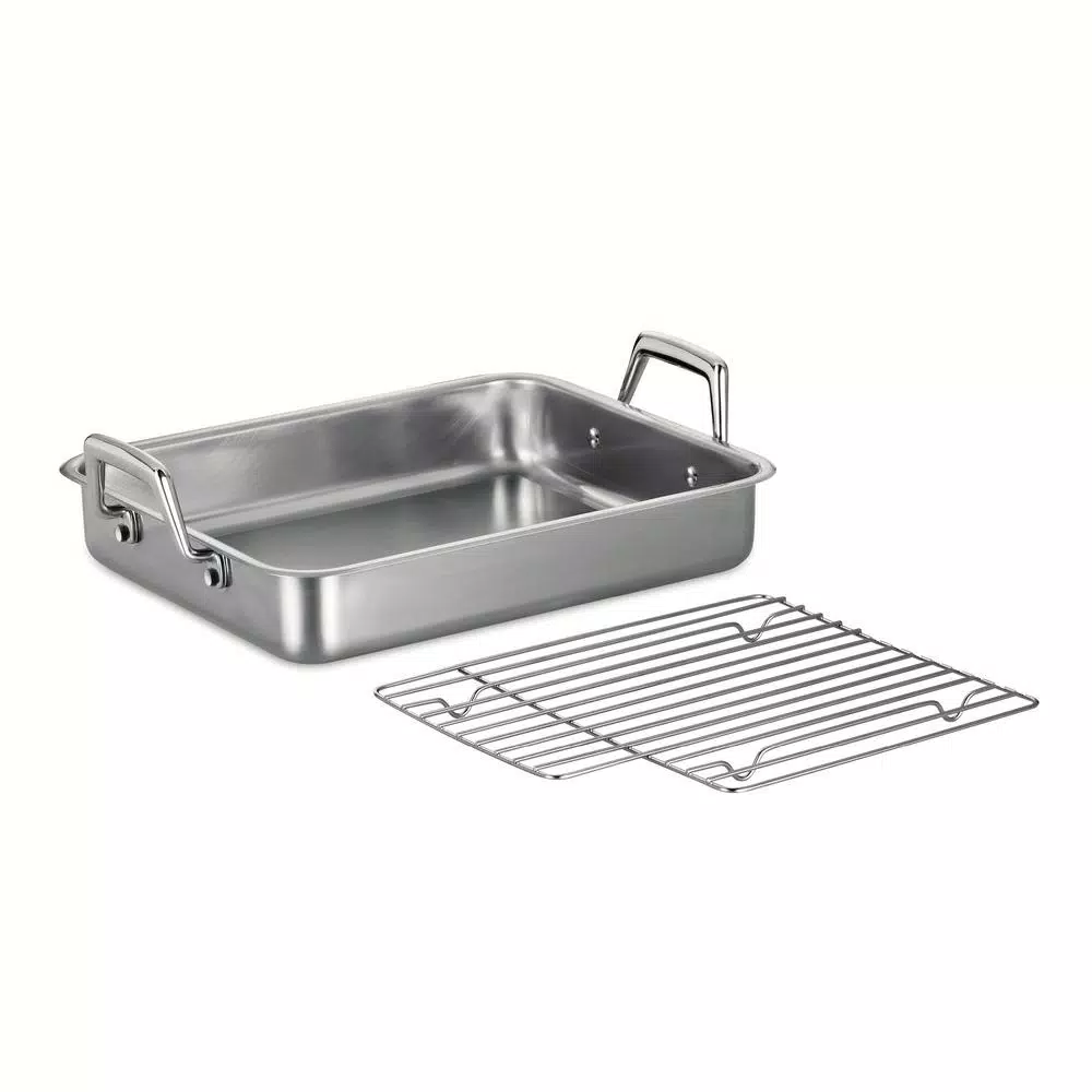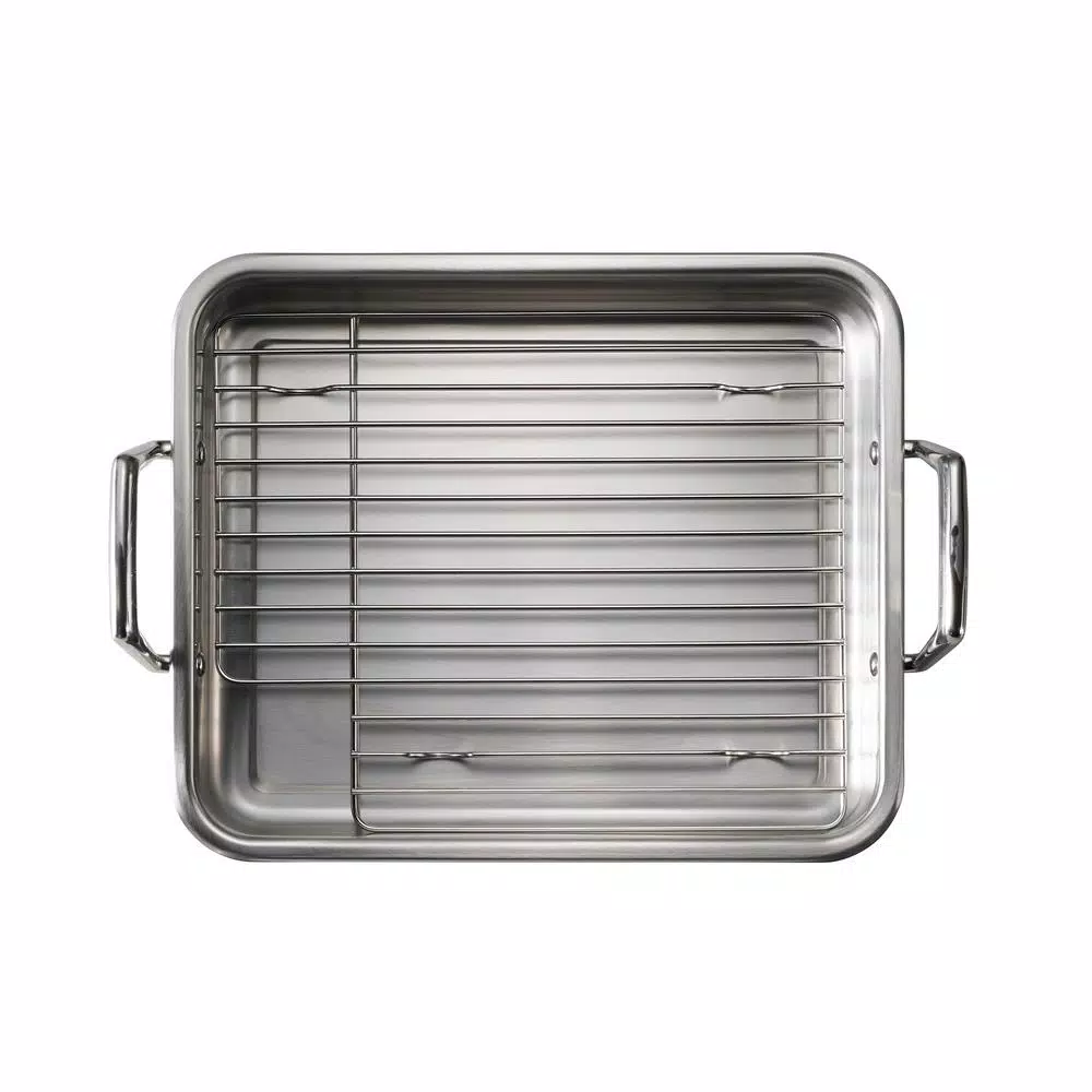 The Tramontina Gourmet Prima 13.5 in. Roasting Pan with Basting Grill is great for everyday meals and elegant feasts, these handsome, hardworking pans make it simple to prepare everything from perfectly roasted meats, poultry and fresh vegetables to satisfying home-baked casseroles like lasagna and mac-and-cheese. The secrets to their terrific performance are restaurant-quality 18/10 stainless-steel construction and a sleek, efficient design. Roasting pan includes stainless steel basting grill and heavy-duty, cast stainless steel riveted mirror-polished handles, for extra durability and a great look for your kitchen. Part of the Tramontina Gourmet collection, a series of timeless products crafted especially for the cooking enthusiast.