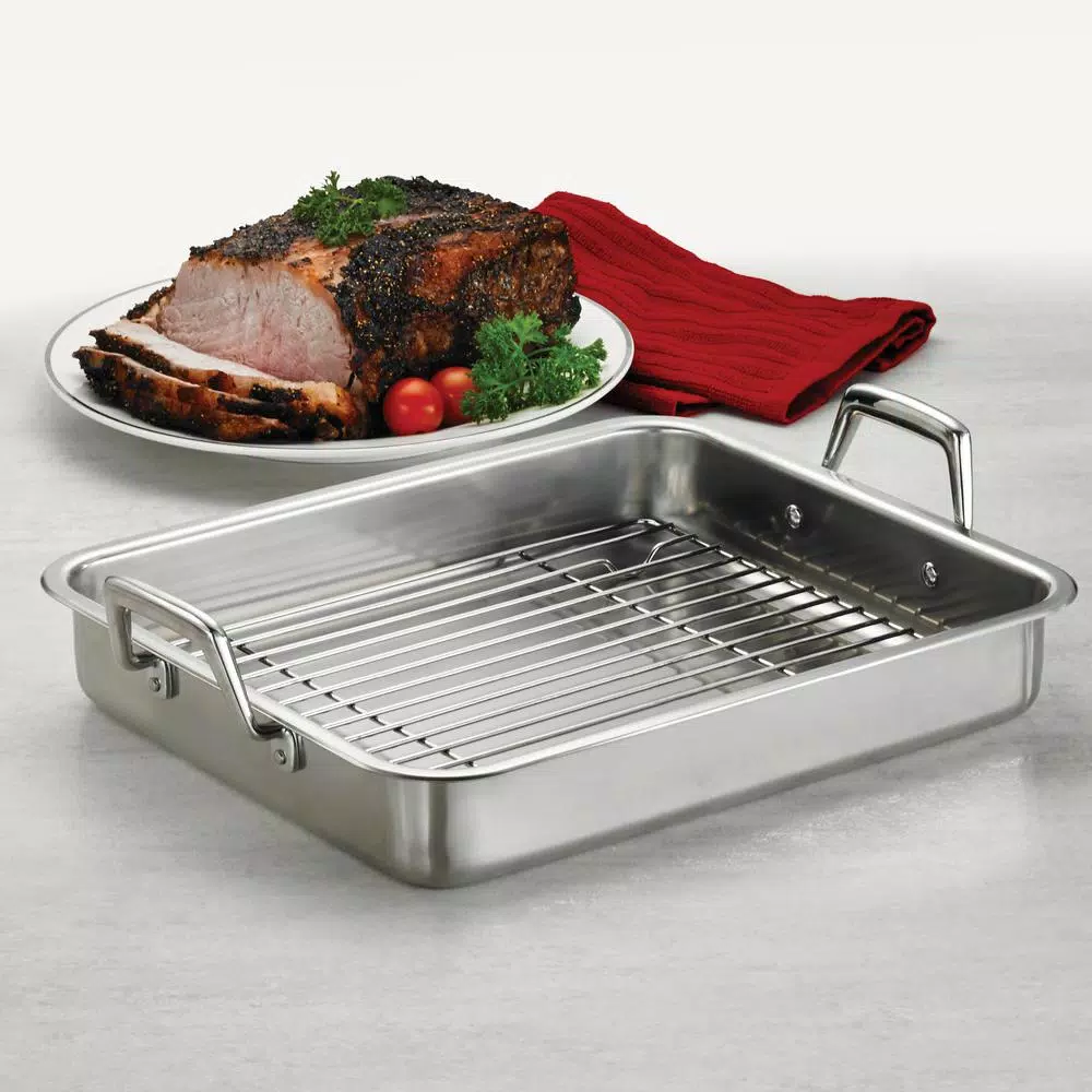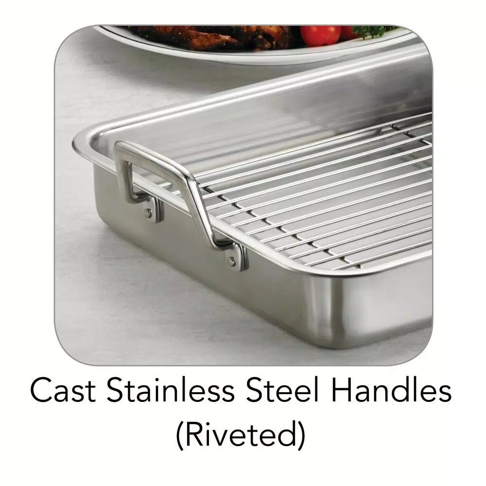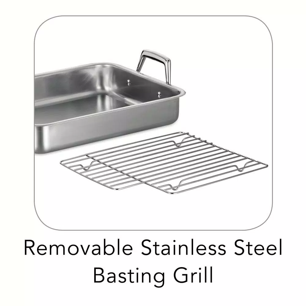 - Includes removable polished stainless steel basting grill
