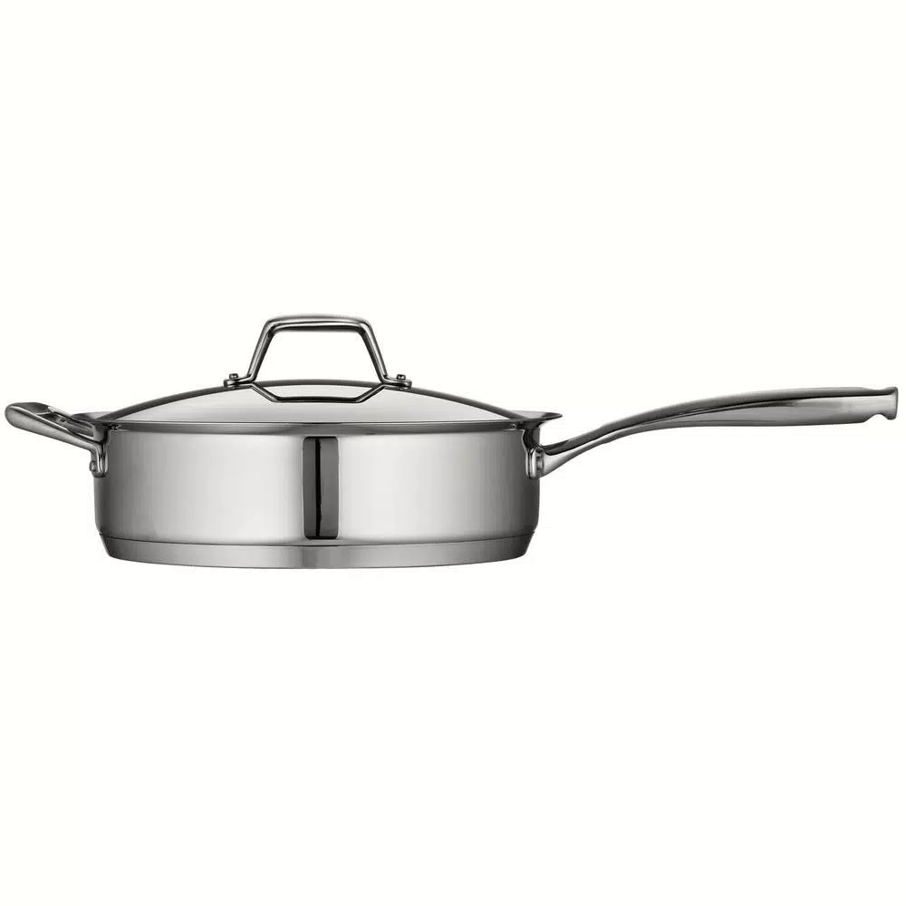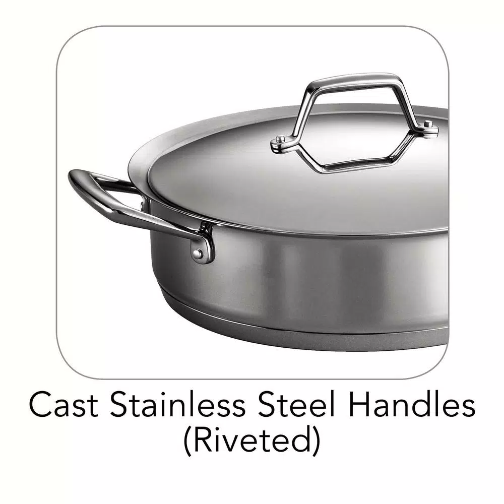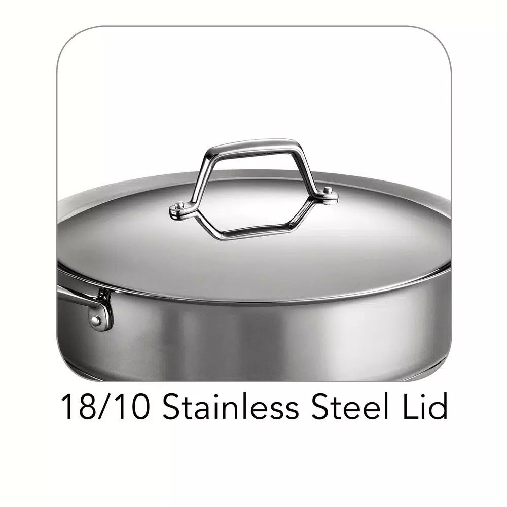 Tramontina Gourmet Prima 5 Qt. Covered Deep Saute Pan features a tri-ply base construction for exceptional performance that distributes heat evenly paired with the impeccable beauty and quality of stainless steel. Its base is impact-bonded with three layers, that consist of 18/10 stainless steel, an aluminum core for conductivity, and magnetic stainless steel, which makes the line perfect for induction-ready cooktops. It adds both beauty and performance to everyday cooking. Part of the Tramontina GOURMET collection, a series of timeless products crafted especially for the cooking enthusiast.