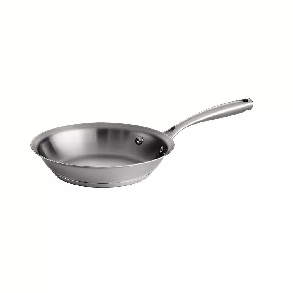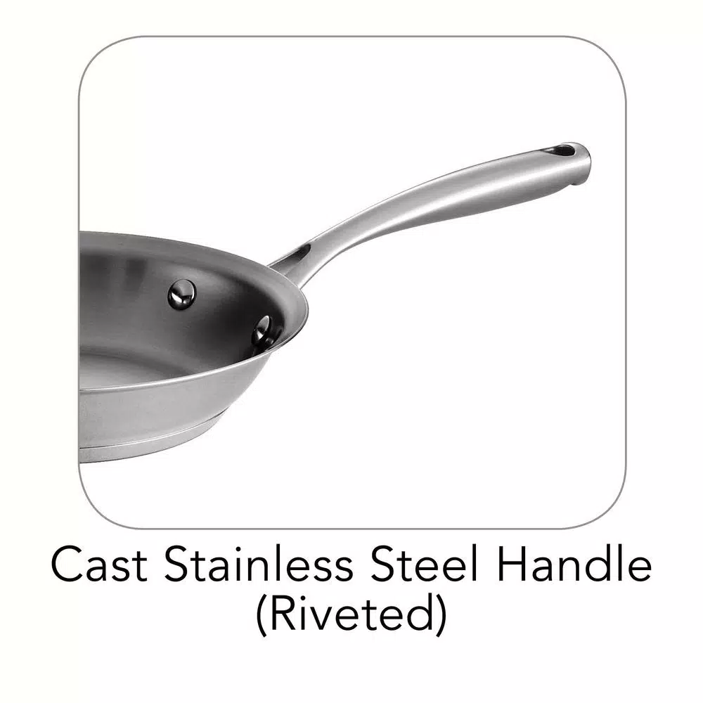 The Tramontina Gourmet Prima 8 in. Fry Pan features a tri-ply base construction for exceptional performance that distributes heat evenly paired with the impeccable beauty and quality of stainless steel. Its base is impact-bonded with three layers, that consist of 18/10 stainless steel, an aluminum core for conductivity, and magnetic stainless steel, which makes the line perfect for induction-ready cooktops. It adds both beauty and performance to everyday cooking. Part of the TRAMONTINA GOURMET collection, which features premium products engineered and manufactured with the finest design, materials and workmanship.