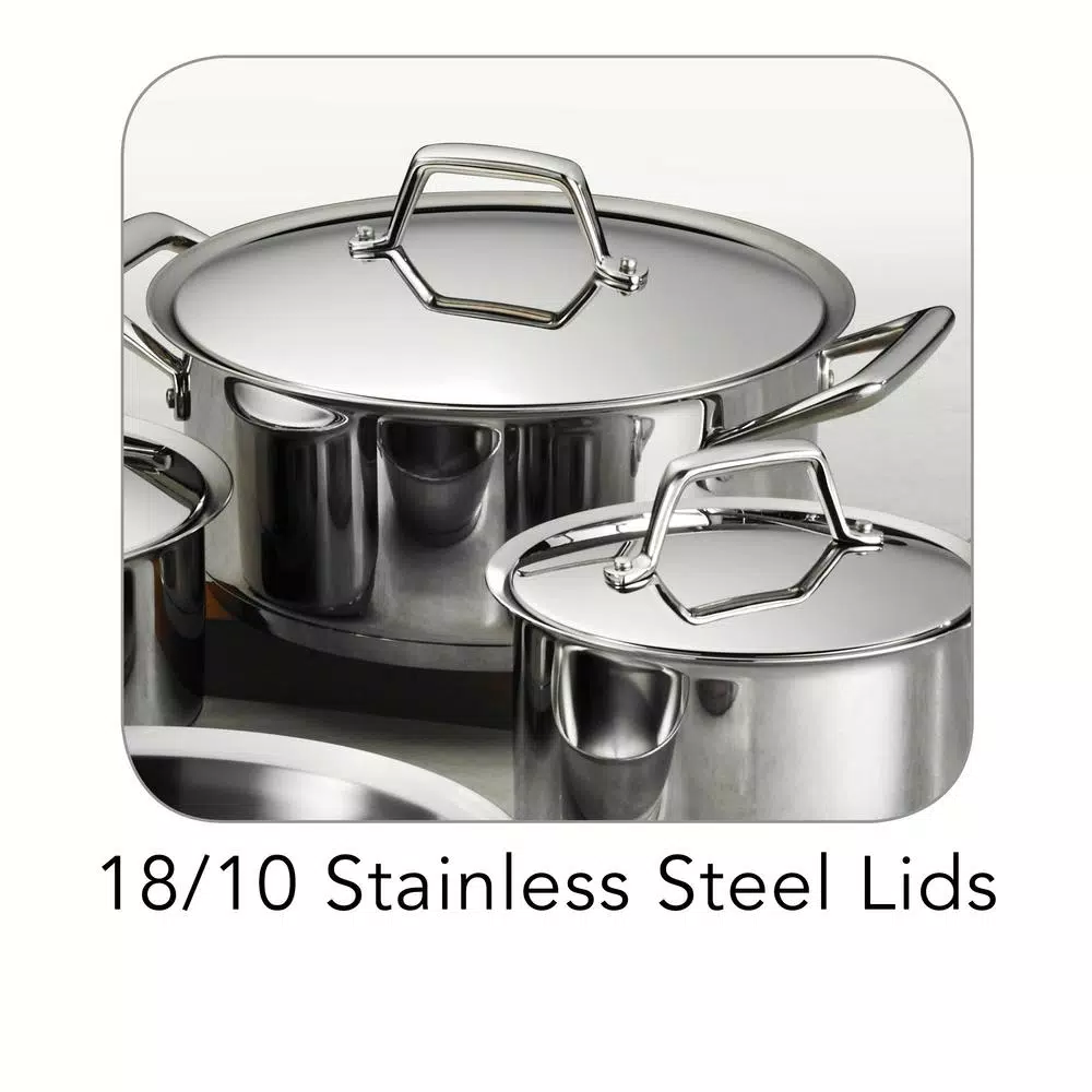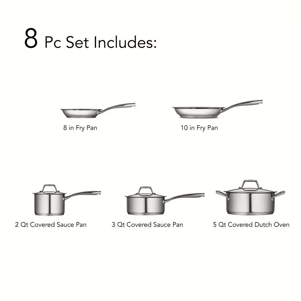 The Tramontina Gourmet Prima 8-piece Cookware Set features a tri-ply base construction for exceptional performance that distributes heat evenly paired with the impeccable beauty and quality of stainless steel. Its base is impact-bonded with three layers, that consist of 18/10 stainless steel, an aluminum core for conductivity, and magnetic stainless steel, which makes the line perfect for induction-ready cooktops. It adds both beauty and performance to everyday cooking! Part of the Tramontina Gourmet collection, a series of timeless products crafted especially for the cooking enthusiast.