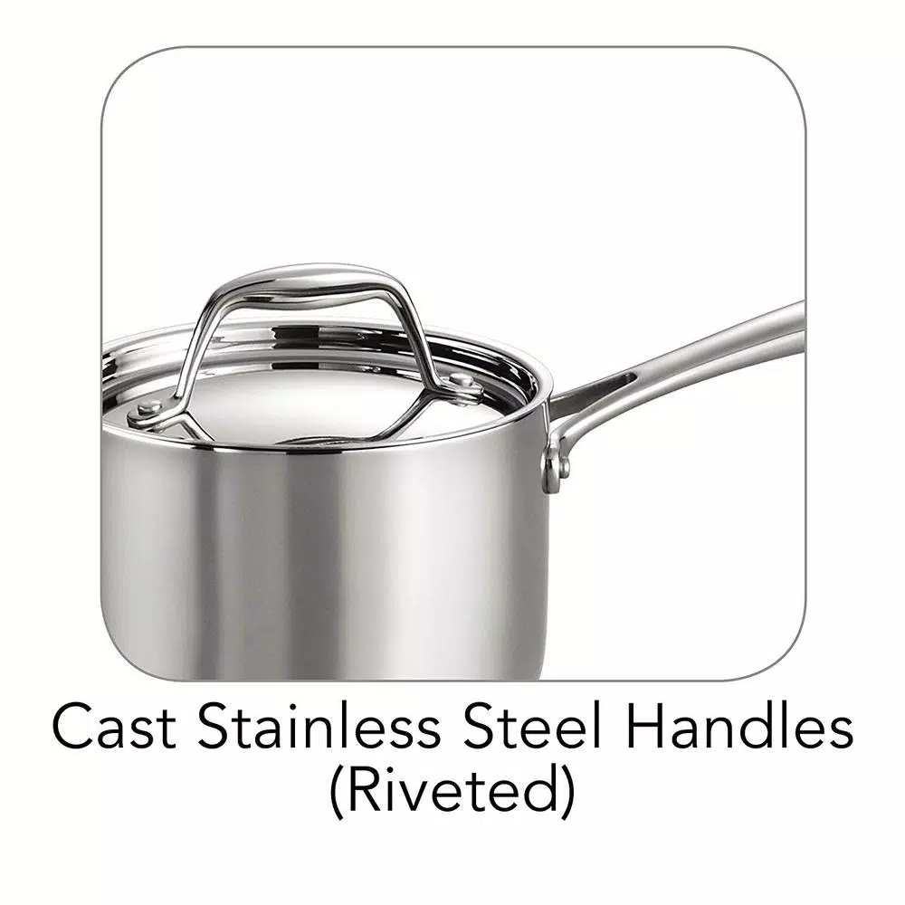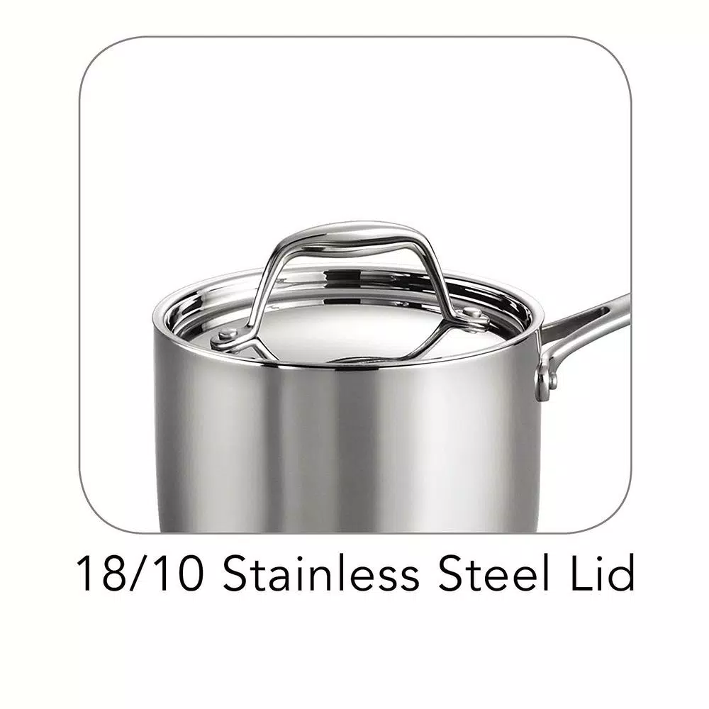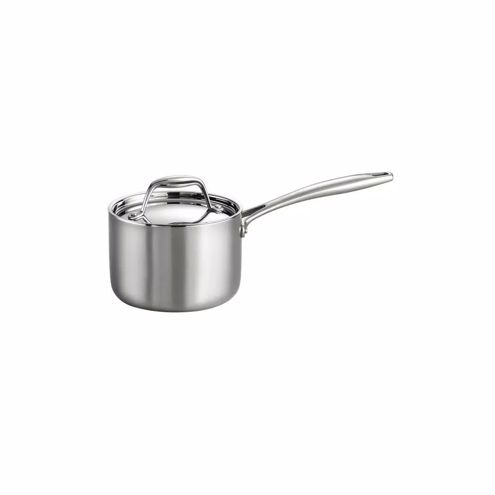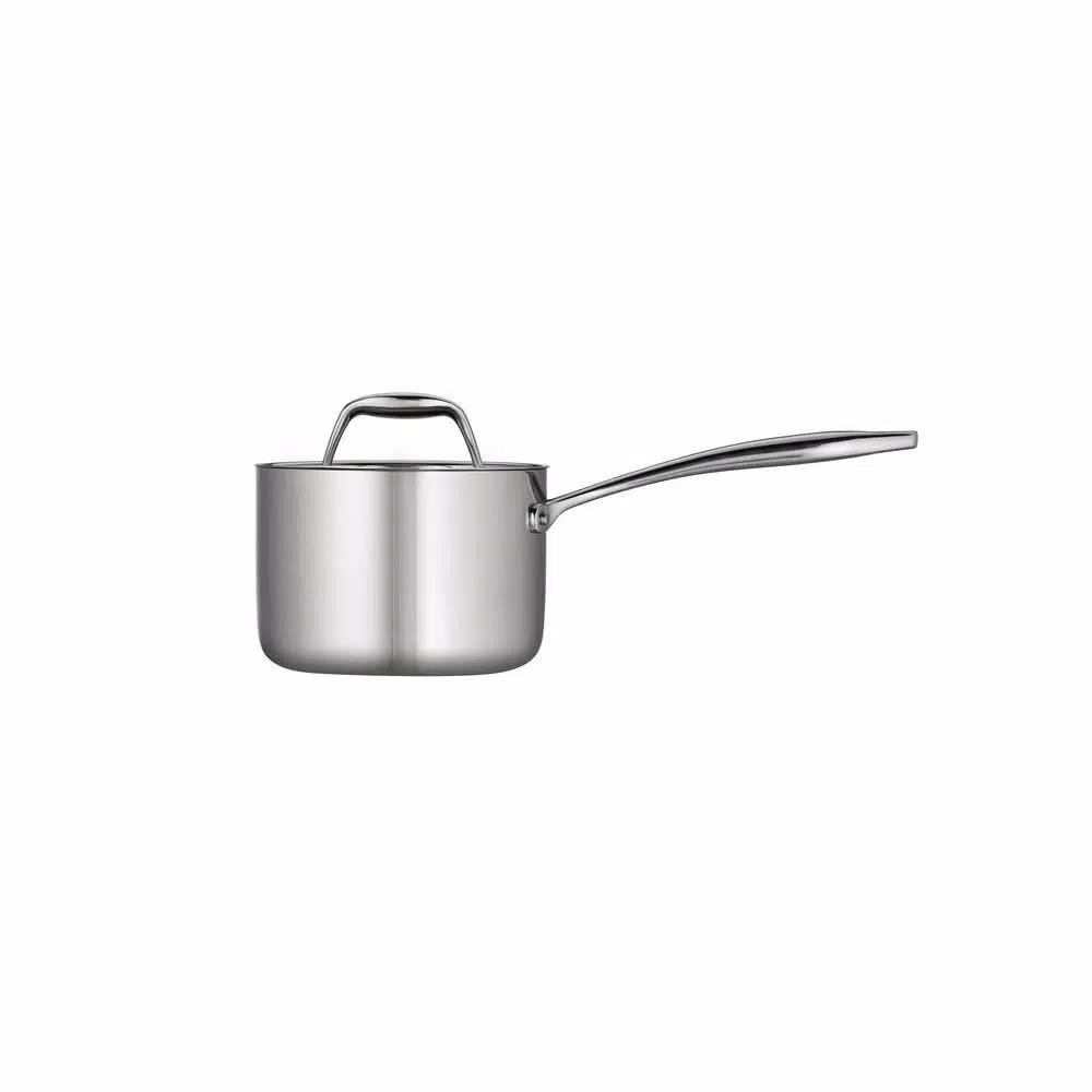Whether filling your kitchen with hearty aromas of your own secret sauce or a whipping up some mac-and-cheese, Tramontinaβs 1.5 Qt Tri-Ply Clad Stainless Steel Covered Sauce Pan is your durable go-to. Youβll love its ergonomically designed, cast stainless steel handle riveted for extra support, as well as its three-layer construction that allows for heating from all sides. Made of premium 18/10 stainless steel, dishwasher-safe, and oven-safe, the 1.5 Qt stainless steel sauce pan is an essential tool in home and commercial kitchens for baking, steaming vegetables, and, yes, just plain boiling water!