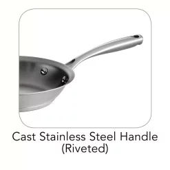 - Precision cast riveted handles and mirror-polished stainless-steel lid