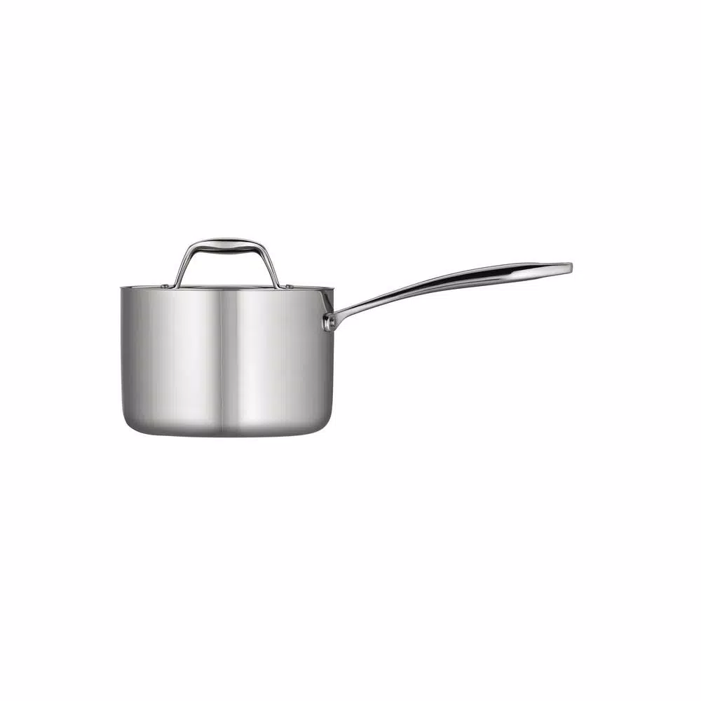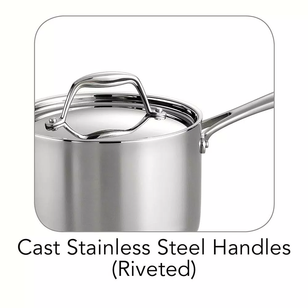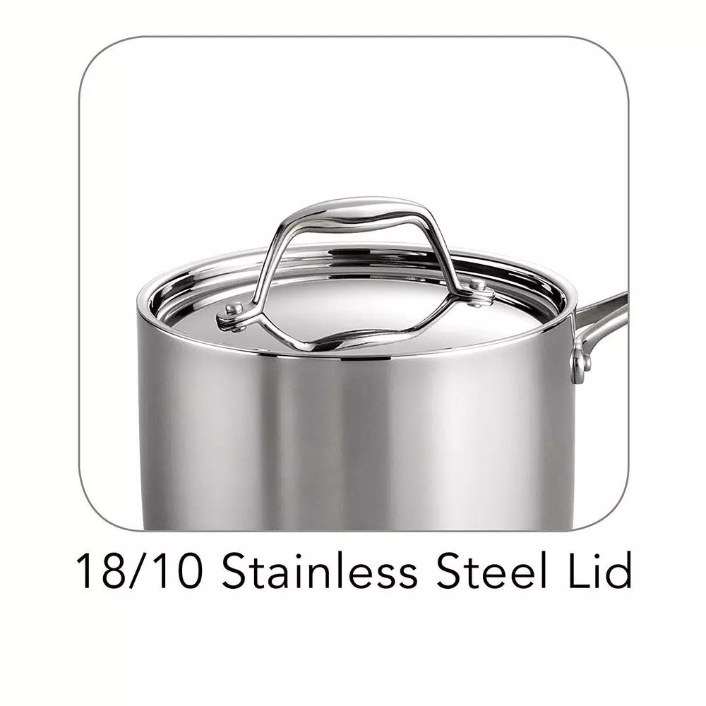 Professional and home cooks alike know the work that goes into making a good sauceβfrom mixing and stirring to simmering and pouring. Trust Tramontinaβs 2 Qt Tri-Ply Clad Stainless Steel Covered Sauce Pan to get those jobs done. A true Tri-Ply Clad construction provides even heating on all sides, and an ergonomic, cast stainless steel handle, riveted for extra support, means a comfortable grip on the handle. When it comes to stirring, the sauce panβs rounded interior corners make it easy to reach every drop of sauce. Made of premium 18/10 stainless steel and compatible with all cooktops, this cookβs staple was specially designed to withstand repeated use even in the busiest kitchens!