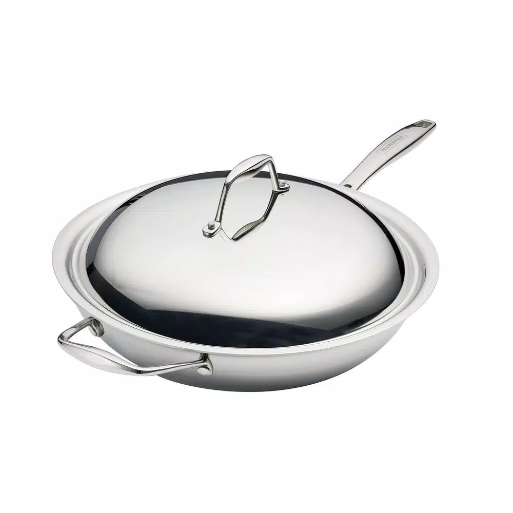 Are you ready to cook beyond your basic stir-fry? Fire up Tramontinaโs Tri-ply Clad 12 in Stainless Steel Wok! Its super-durable stainless steel, tri-ply clad construction is strong enough to handle your all-star taco filling, steaming lobsters, or scrambling eggs for a large group. When cooking your favorite recipe, the wokโs tri-ply base allows for even heat distribution, resulting in lower cook times. Its riveted long handle offers easy maneuverability, and its stainless steel design makes for low-maintenance cooking. Compatible with all cooktops and dishwasher-safe, this one is a must-have for your kitchen! Made in Brazil.