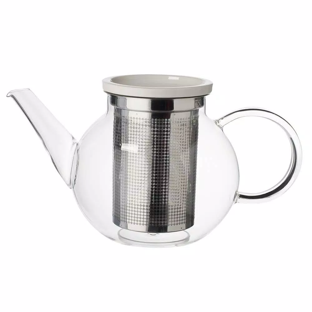 Enjoy brewing your favorite hot tea these classicly designed double walled teapots. Each is designed with a section of air sandwiched between 2-layers of glass, keeping the liquids hot far longer than a traditional ceramic teapot. Removable stainless-steel tea strainer and white porcelain lid top off the teapot nicely. The Artesano Hot Beverage collection will surely elevate any drink to a special occasion. Dishwasher and microwave safe.
